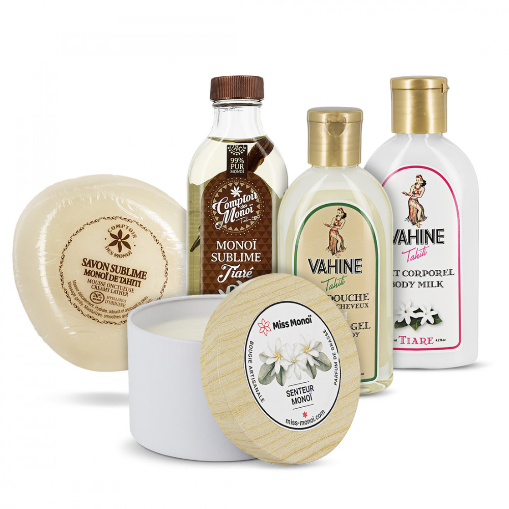 Monoï Sublime Tiaré: un soin traditionnel, parfait pour nourrir la peau et sublimer la chevelure, laissant un toucher soyeux et un parfum floral délicat.