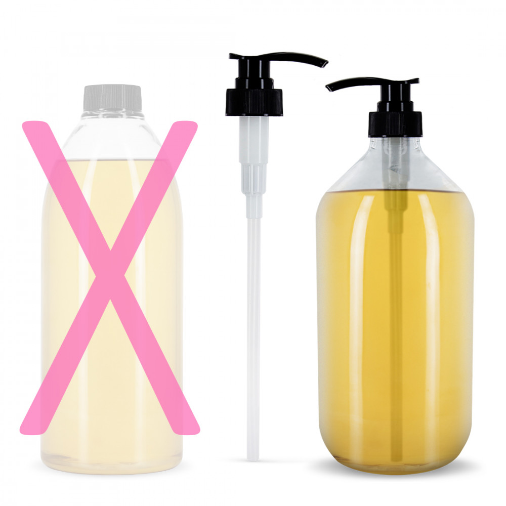 Entfernen Sie den Originalverschluss Ihrer 1-Liter-Flasche und schrauben Sie die Tiki Tahiti-Pumpe fest auf. Drücken Sie nach der Installation auf den Pumpenkopf, um das Produkt zu verteilen. Reinigen Sie die Pumpe regelmäßig, wenn sie mit dickflüssigen oder parfümierten Ölen verwendet wird.