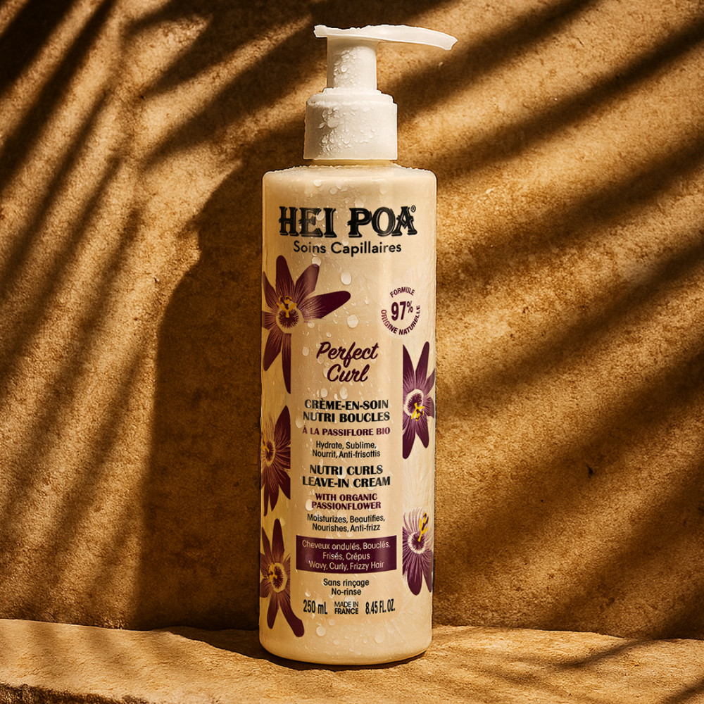 Die Perfect Curl Crème-en-Soin Hei Poa 250ml ist eine exotische, polynesische Haarpflege, die speziell für Locken entwickelt wurde. Diese Leave-in-Pflege mit 97% natürlichen Inhaltsstoffen nährt und bändigt welliges, lockiges, krauses und krauses Haar. Der betörende Duft der Passionsblume entführt Sie auf ferne Inseln, während er die natürliche Schönheit Ihres Haars zum Vorschein bringt. Ideal für eine Haarroutine, die von polynesischen Pflegeritualen inspiriert ist. Es schützt, spendet Feuchtigkeit und veredelt jede Locke.