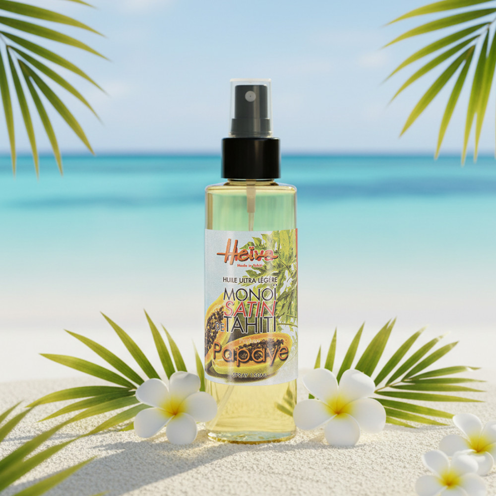 Abbandonatevi alla magia del Monoï Satin Heïva Papaye e lasciatevi trasportare nelle lagune turchesi di Tahiti ad ogni applicazione!