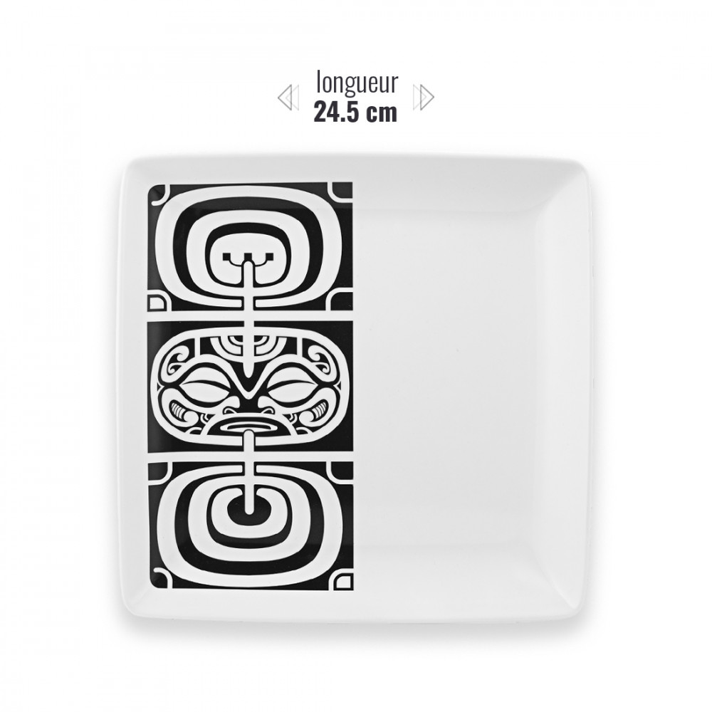 Descrizione completa per Mana Polynesian tatoo piatto quadrato in melamina 24,5 cm