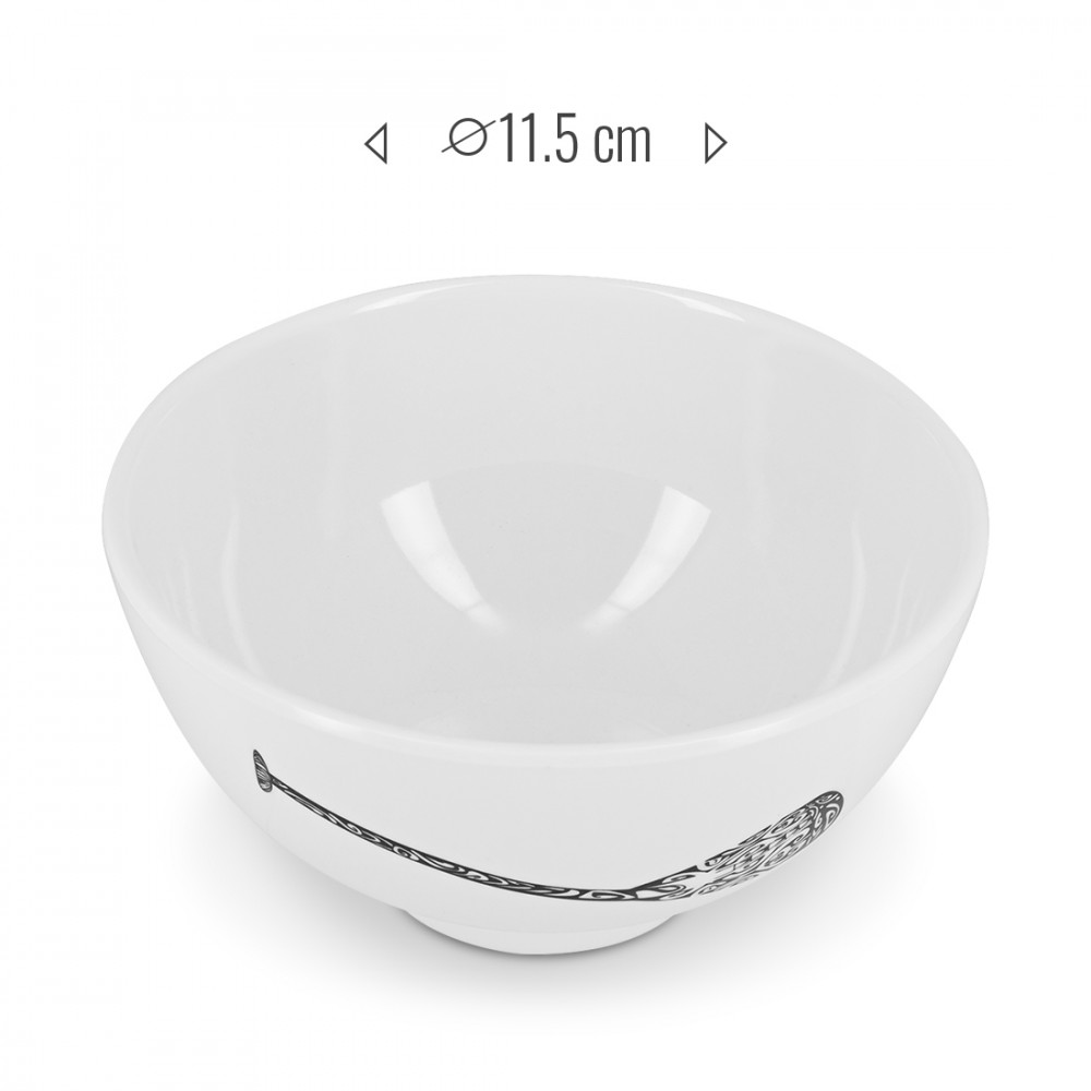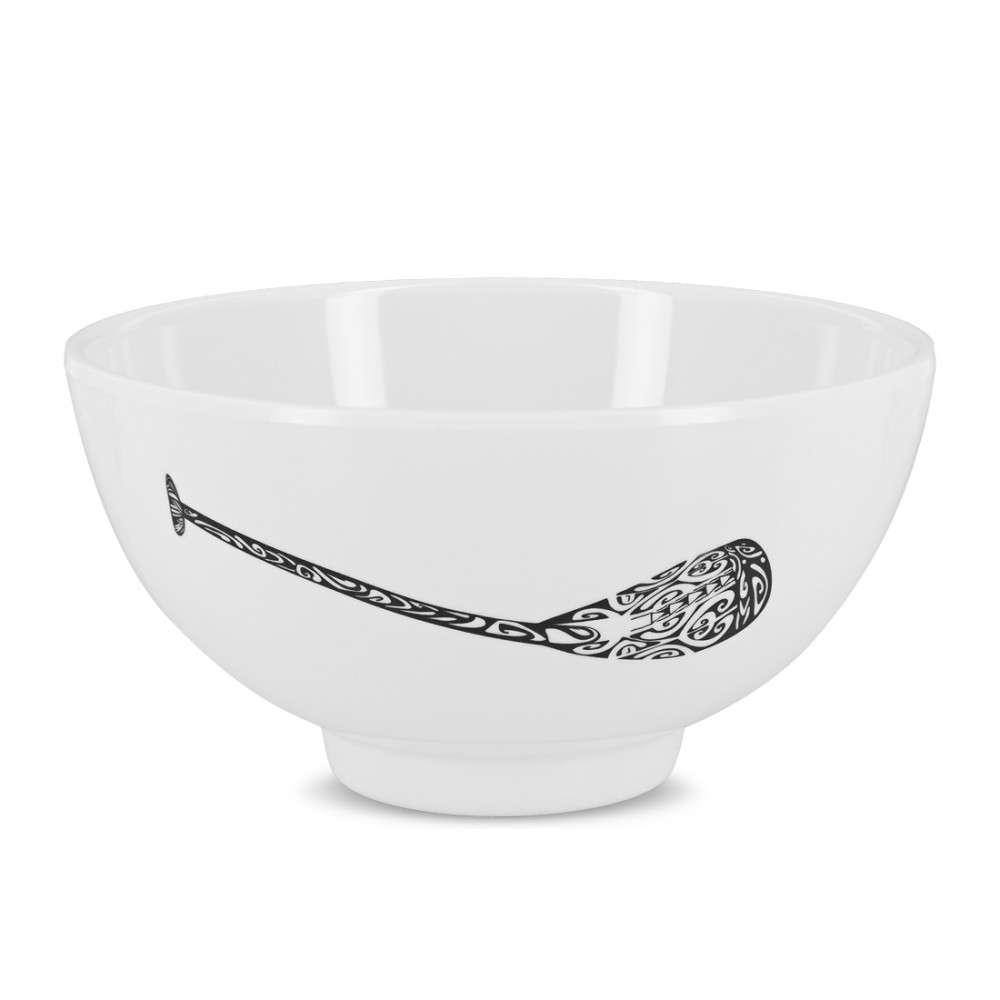 Dê um toque de cultura oceânica à sua vida quotidiana com esta taça de melamina decorada com uma tatuagem polinésia de uma pá.