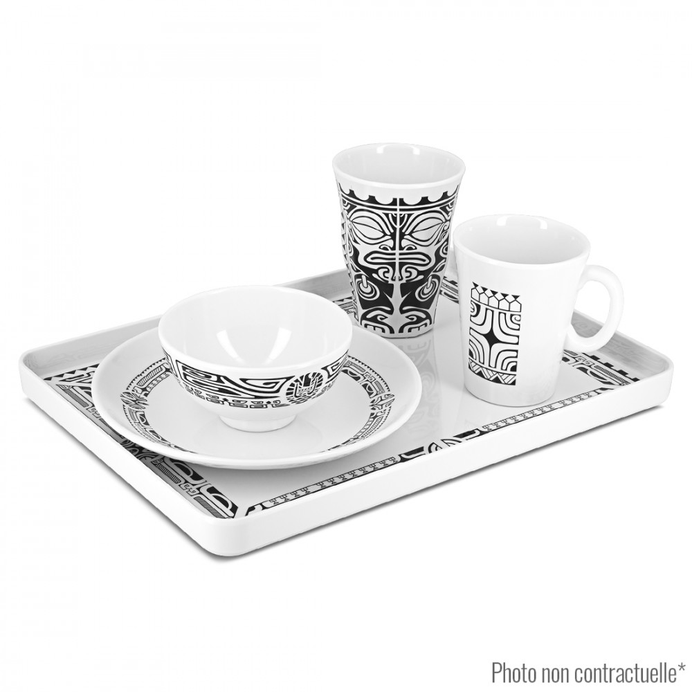 Dê um toque de cultura oceânica à sua vida quotidiana com esta taça de melamina decorada com uma tatuagem polinésia de uma pá. Elemento central da vida ...