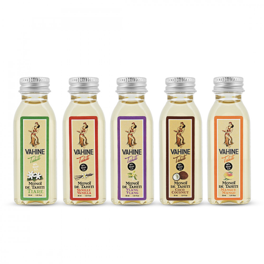 Conjunto de 5 óleos de monoi Vahiné do Taiti, 30 ml
